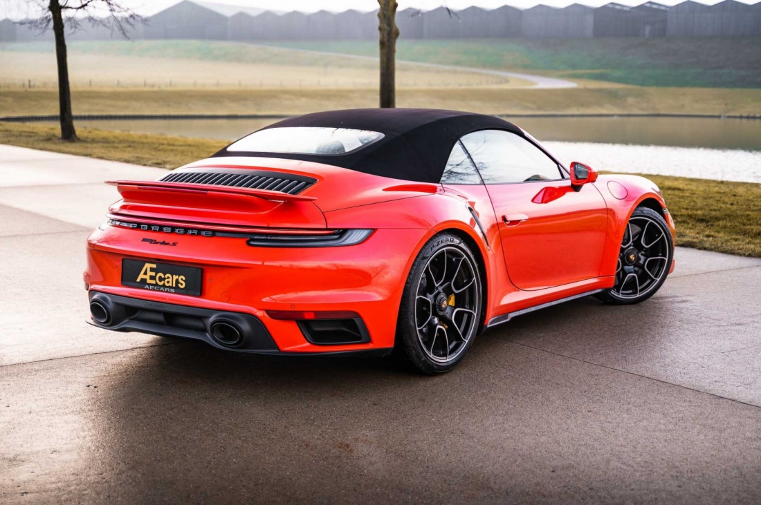 De iconische 911 - 992 Porsche Turbo S Cabriolet in Lava Orange combineert verbluffende prestaties met open-lucht elegantie. Met een twin-turbo 3.8 L zescilinder, 650 pk en all-wheel drive accelereert hij in 2,7 s naar 100 km/u. Luxueus interieur, precieze handling, opvallende kleur pure Porsche-beleving en uitzonderlijke remkracht voor ultieme sportieve controle.
